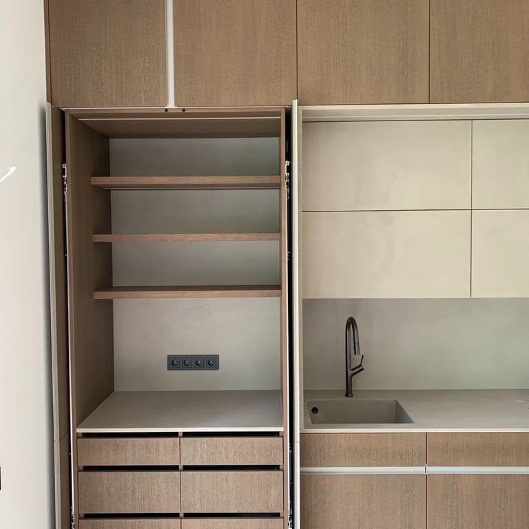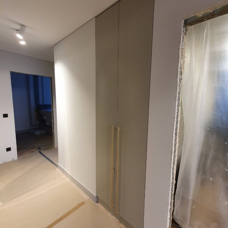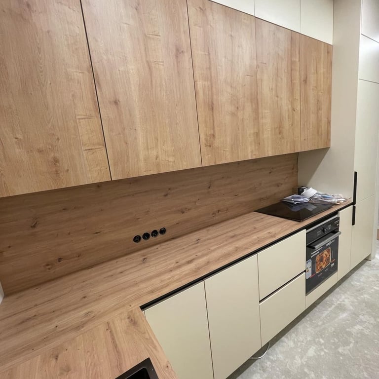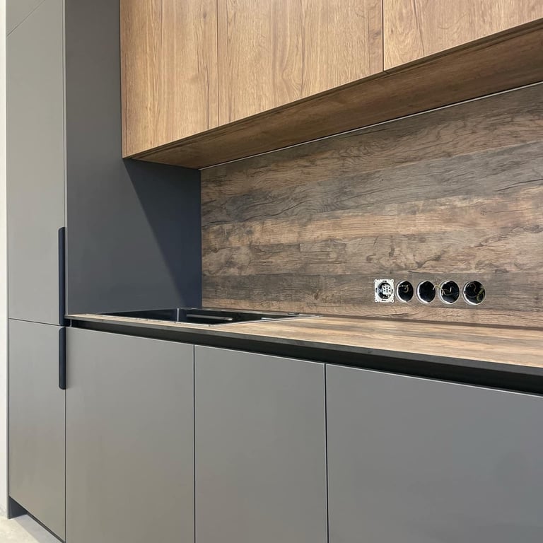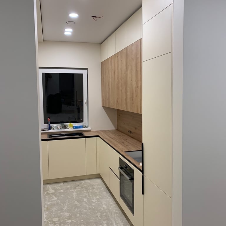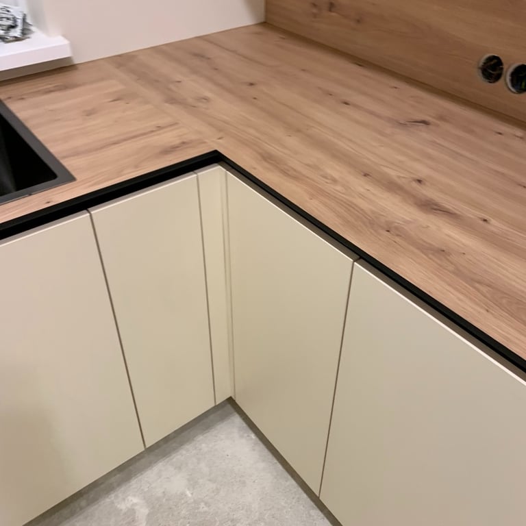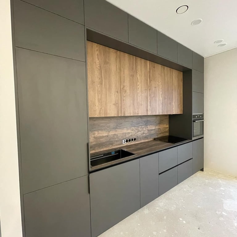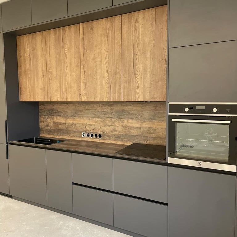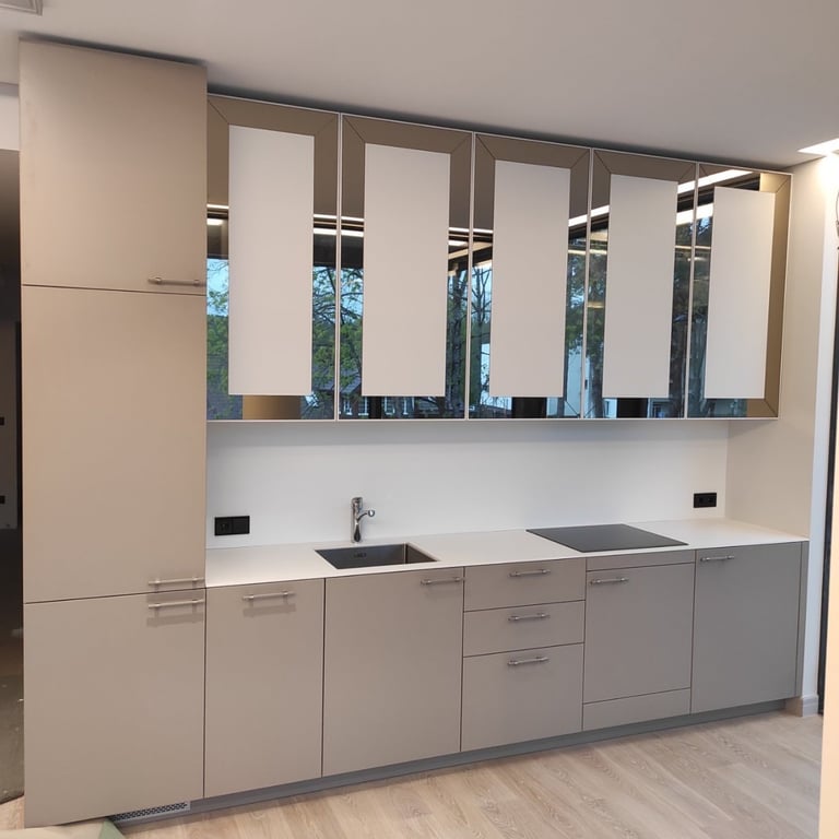 Spinta su dažytais MDF fasadais ir frezuotom rankenom