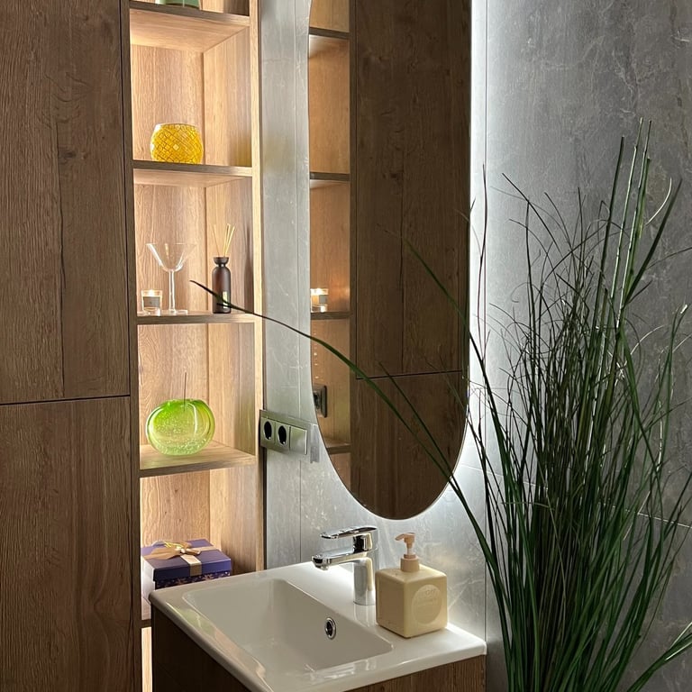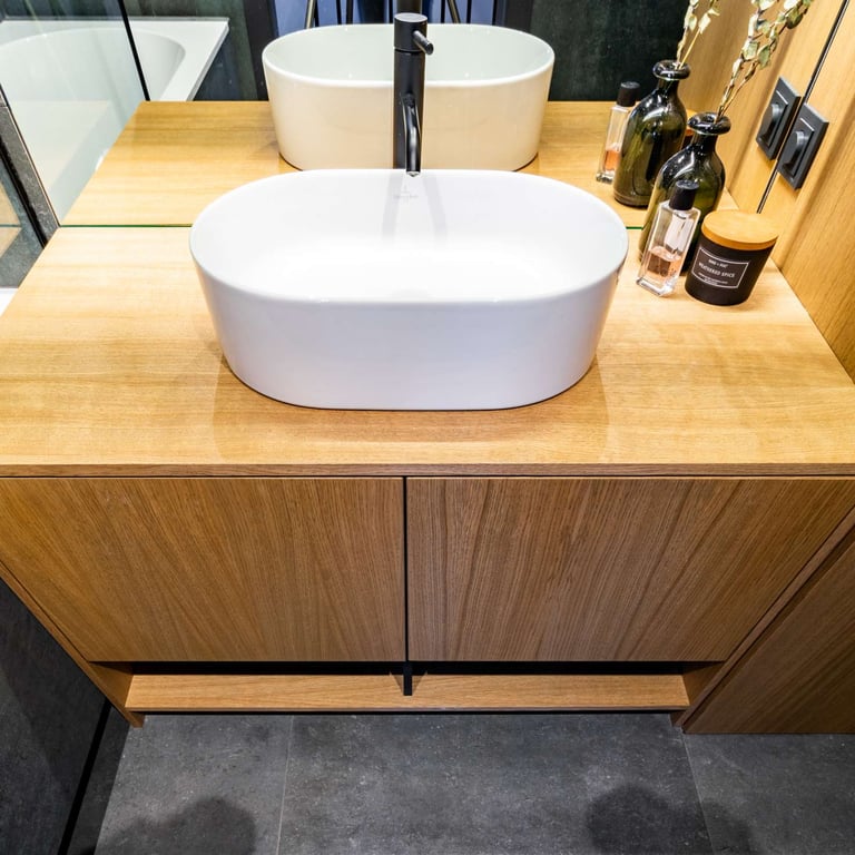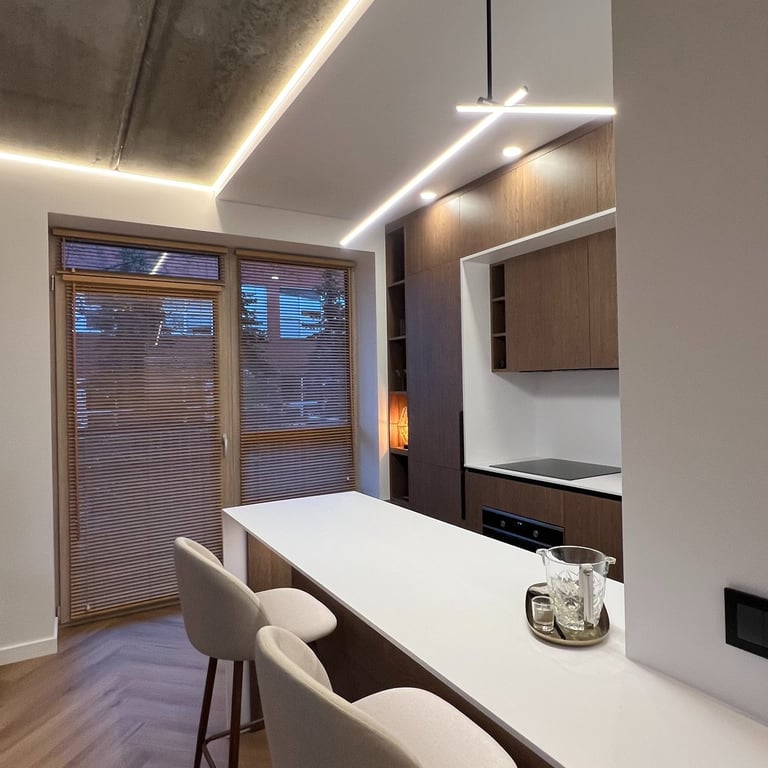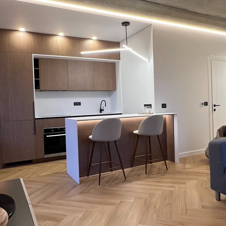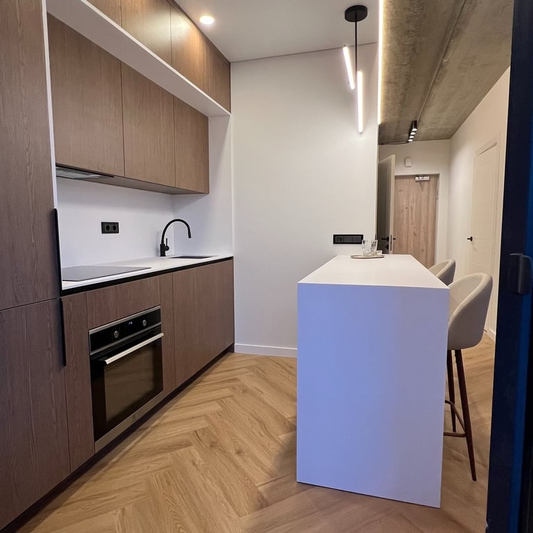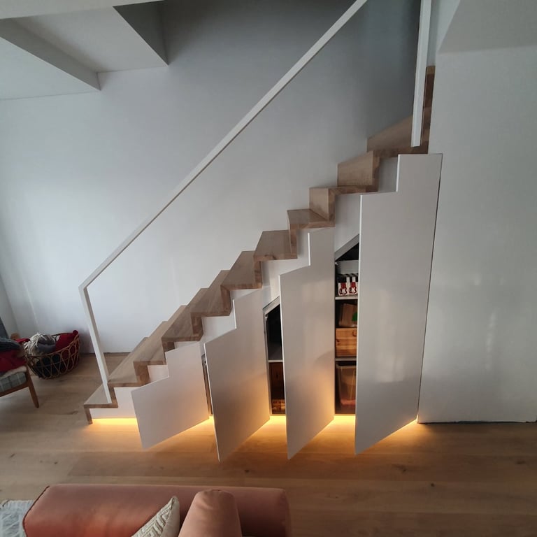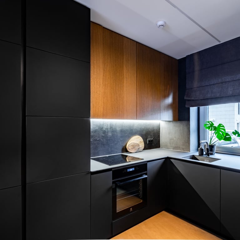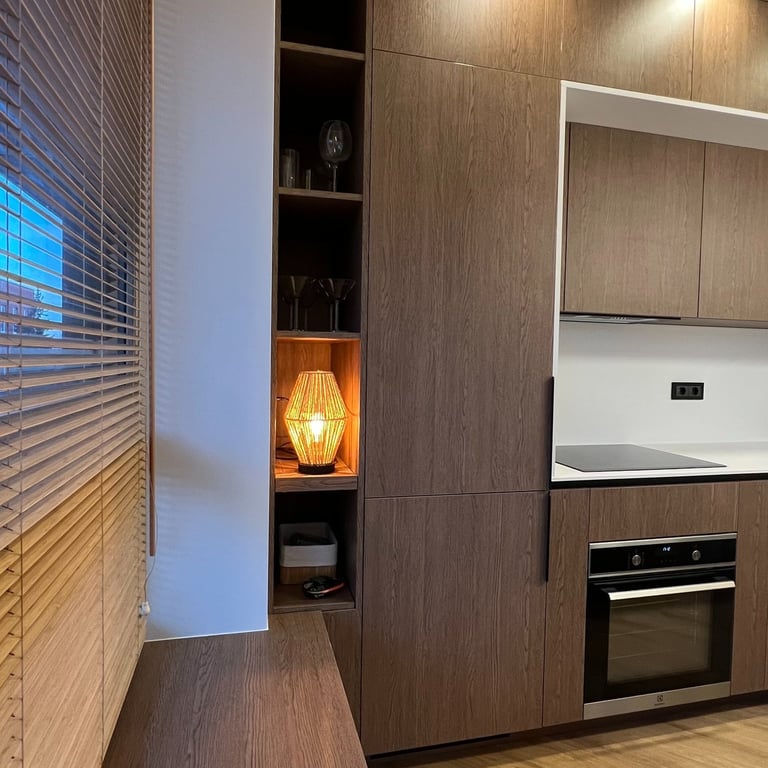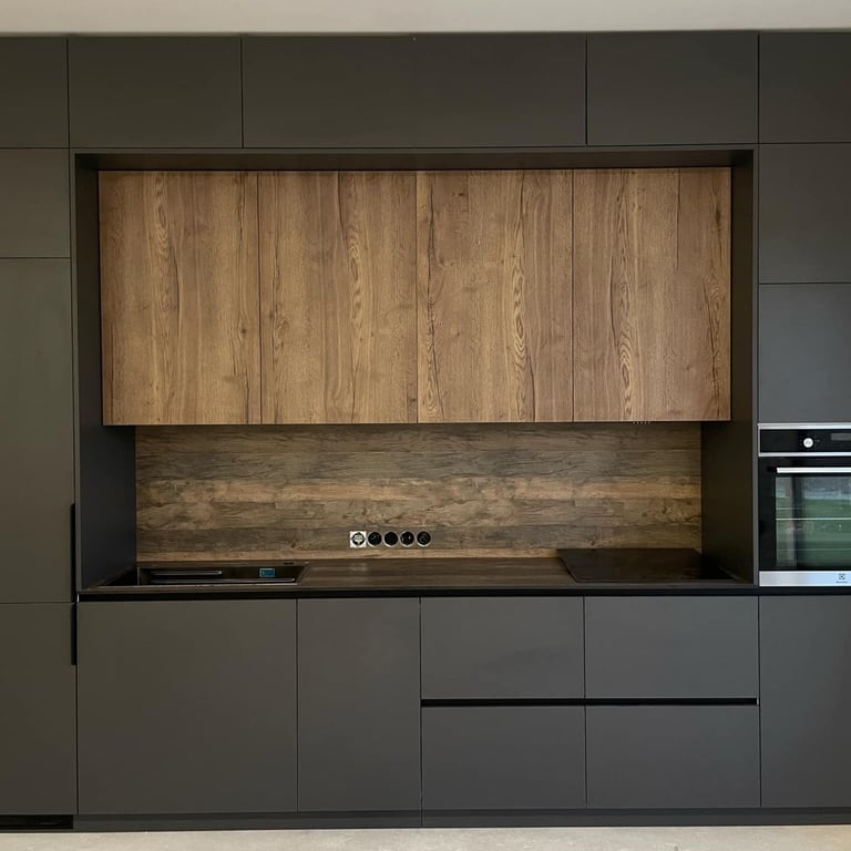 Spinta su dažytais MDF fasadais ir frezuotom rankenom